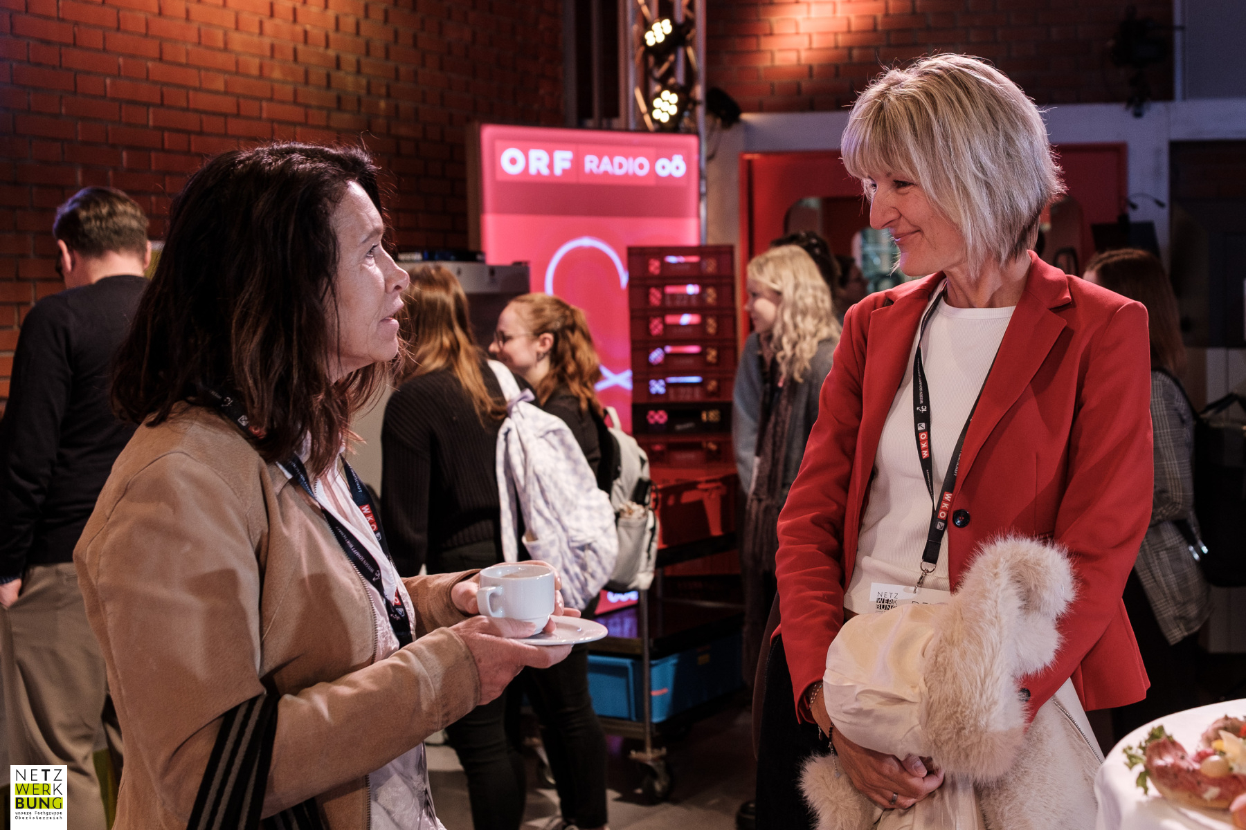 Zwei Besucherinnen im Gespräch beim Denkfrühstück